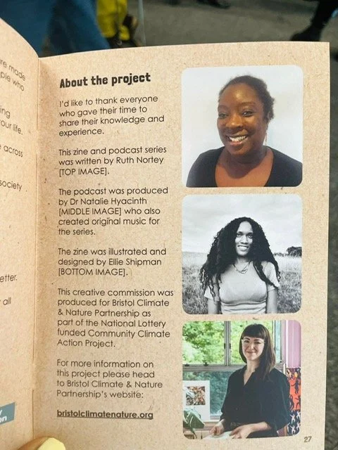 The podcast was written by Ruth Nortey. Production by Natalie Hyacinth and Ruth Nortey, with original sound composition by Natalie Hyacinth. The series is part of a creative commission for Bristol Climate & Nature Partnership as part of their National Lottery funded Community Climate and Nature Action Project.
